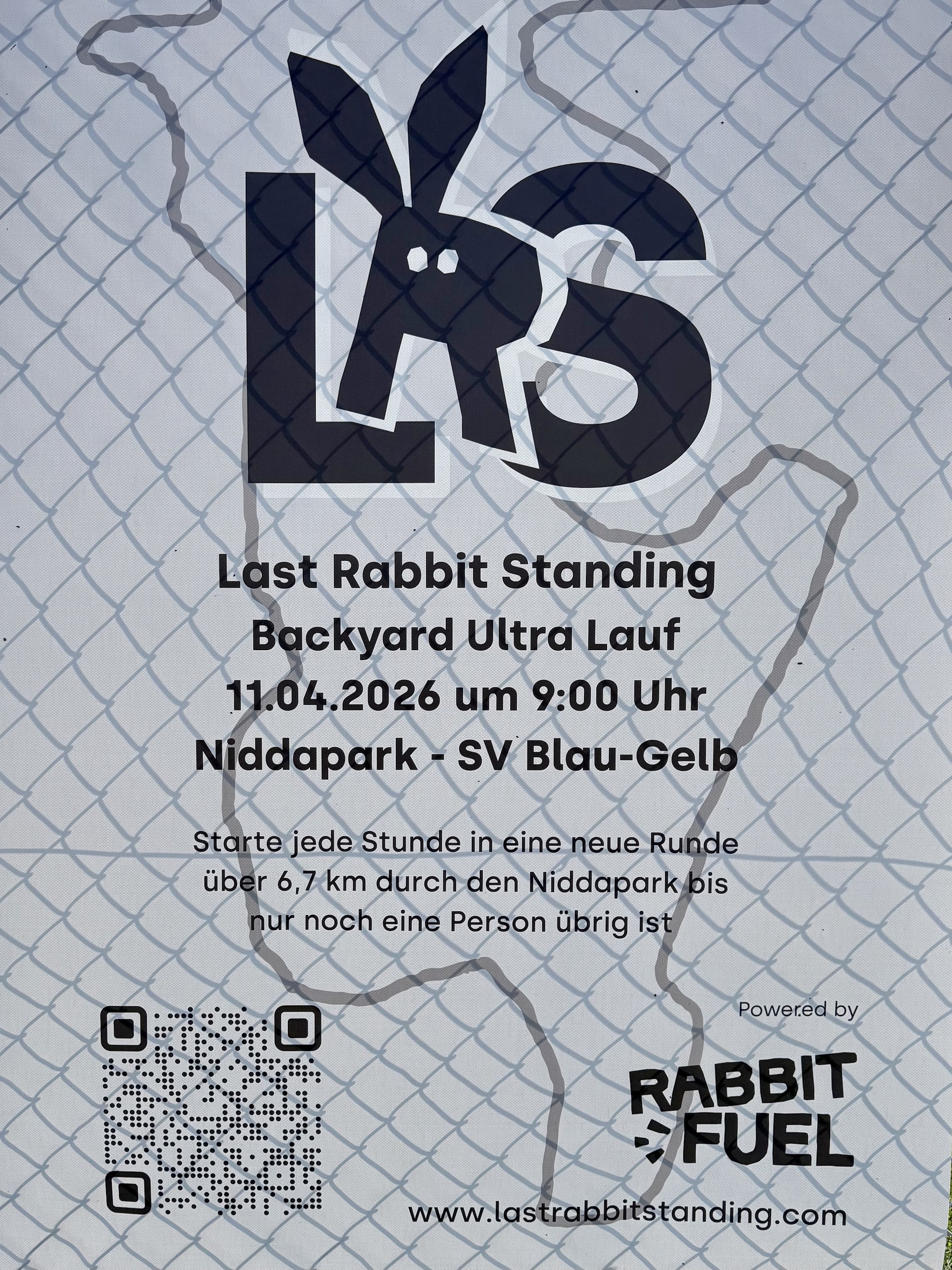Am Samstag, 11. April um 9.00 Uhr startet im Niddapark ein besonderer LaufLast Rabbit Standing. Diesen sog. Backyard Ultra-Lauf veranstaltet ein Startup zusammen mit Blau-Gelb – wir haben die beiden zusammengebracht. Worum geht’s? Die festgelegte Strecke von 6,7km (weitgehend unsere GLT 5km-Runde) läuft man auf Pfiff in max. 60 Minuten. Exakt nach den 60 Minuten kommt schon der nächste Pfiff und man hat wieder 60 Minuten Zeit, die Strecke zu absolvieren. Und so weiter und so fort. Gewinner ist nur, wer eine Runde mehr schafft als der gesamte Rest. Der letzte Hase halt. Das kann ein langer Tag werden und dann kommt die Nacht … eben ein Ultra-Lauf! Das Startup sind Christian und Jette, die mit dieser Veranstaltung ein neues endurance food bekanntmachen wollen: Herzhafte Verpflegung statt süße Riegel. Anmeldung bis 8. April.